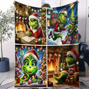 Festive Grinch Christmas Scenes Collage Pattern Multipurpose Throw Blanket