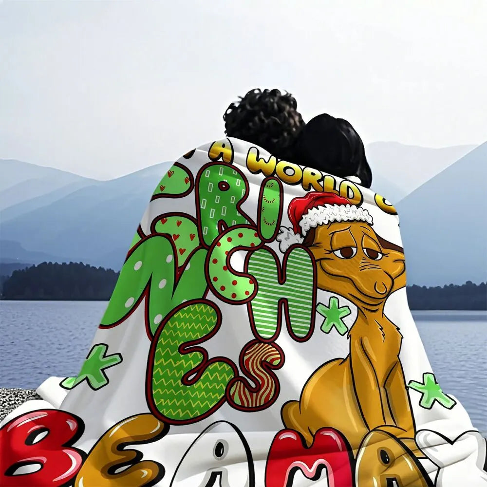 Festive Grinches Beamax Comic Style White Pattern Multipurpose Throw Blanket