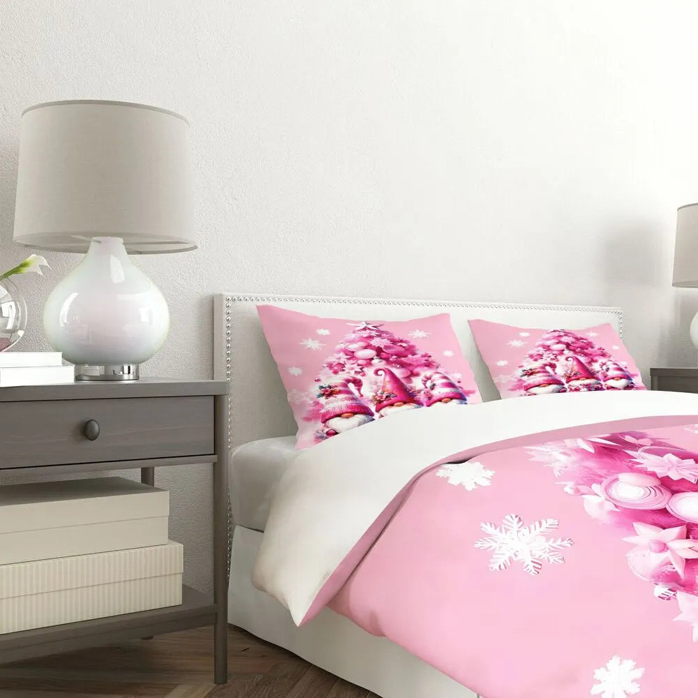 Christmas Cute Gnomes Pink Tree Christmas Gift Duvet Cover Set Kids Bedding Set