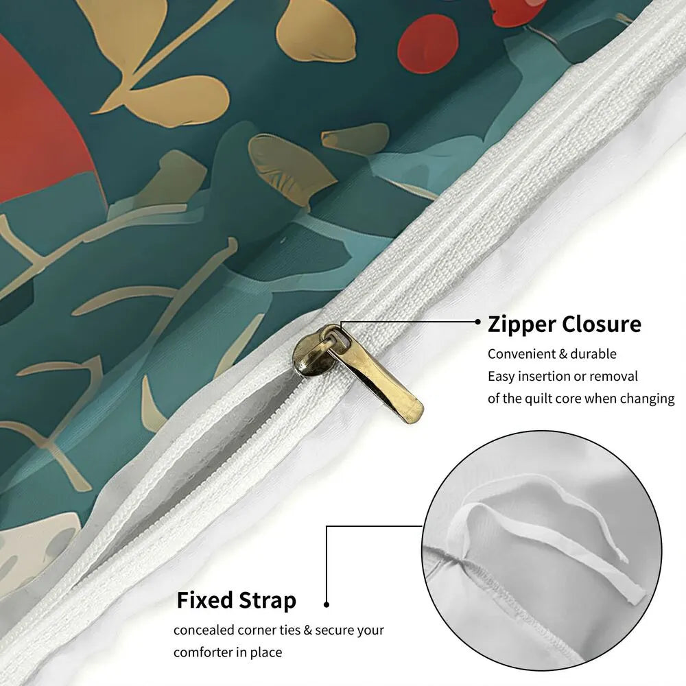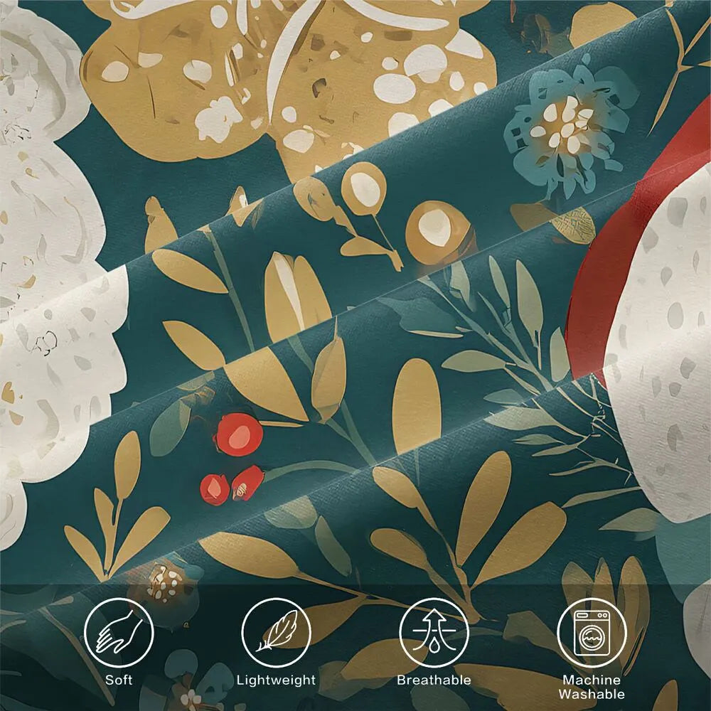 Christmas Hipster Santa Floral Teal Christmas Gift Duvet Cover Set Kids Bedding Set