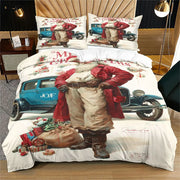 Christmas Vintage Santa Blue Car Beige Christmas Gift Duvet Cover Set Kids Bedding Set