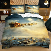 Christmas Vintage Santa Sleigh Reindeer Night Sky Christmas Gift Duvet Cover Set Kids Bedding Set