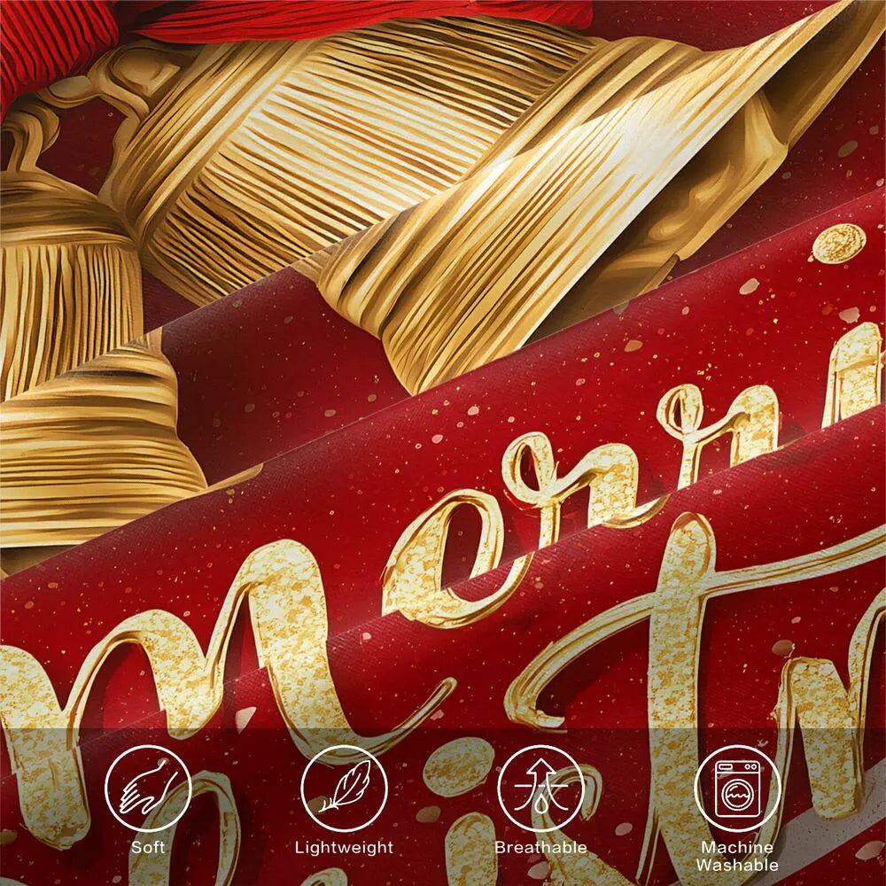 Christmas Glitter Golden Bells Merry Christmas Red Christmas Gift Duvet Cover Set Kids Bedding Set