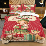 Surprise your child with this Christmas Vintage Elf Cats Merry Christmas Red Polka Dot Christmas Gift Duvet Cover Set, a nostalgic blend of festive charm and cozy comfort. Featuring a vintage-style elf with adorable cats amidst holiday gifts on a classic red polka dot backdrop, it brings the timeless spirit of Christmas to any bedroom. Made from soft, durable material, it’s perfect for kids who love classic Christmas themes and adds a warm, inviting touch to their space.