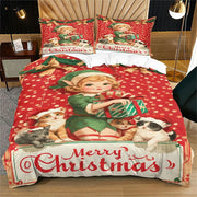 Surprise your child with this Christmas Vintage Elf Kittens Merry Christmas Red Polka Dot Christmas Gift Duvet Cover Set, a nostalgic blend of festive charm and cozy comfort. Featuring a vintage-style elf with adorable kittens amidst holiday gifts on a classic red polka dot backdrop, it brings the timeless spirit of Christmas to any bedroom. Made from soft, durable material, it’s perfect for kids who love classic Christmas themes and adds a warm, inviting touch to their space.
