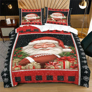 Christmas Vintage Santa Football Snowflake Black Red Christmas Gift Duvet Cover Set Kids Bedding Set