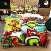 Grinch Colorful Christmas Sleigh Christmas Gift Duvet Cover Set Kids Bedding Set