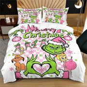 Grinch Merry Christmas Duvet Cover Set with Pillowcases Kids Bedding Set