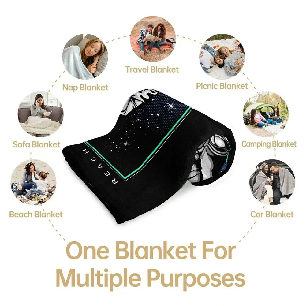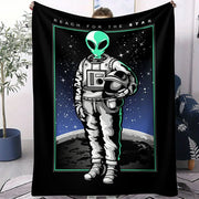 Introducing our Alien Astronaut on Moon Pattern Multipurpose Throw Blanket! Featuring a captivating design of an alien in an astronaut suit standing on the moon, set against a starry space backdrop, this blanket is perfect for adding a cosmic and imaginative touch. It can be used as a nap blanket, sofa blanket, travel blanket, picnic blanket, camping blanket, beach blanket, or car blanket. Made from soft fabric, it offers comfort while bringing a fun, space - themed vibe to any occasion.