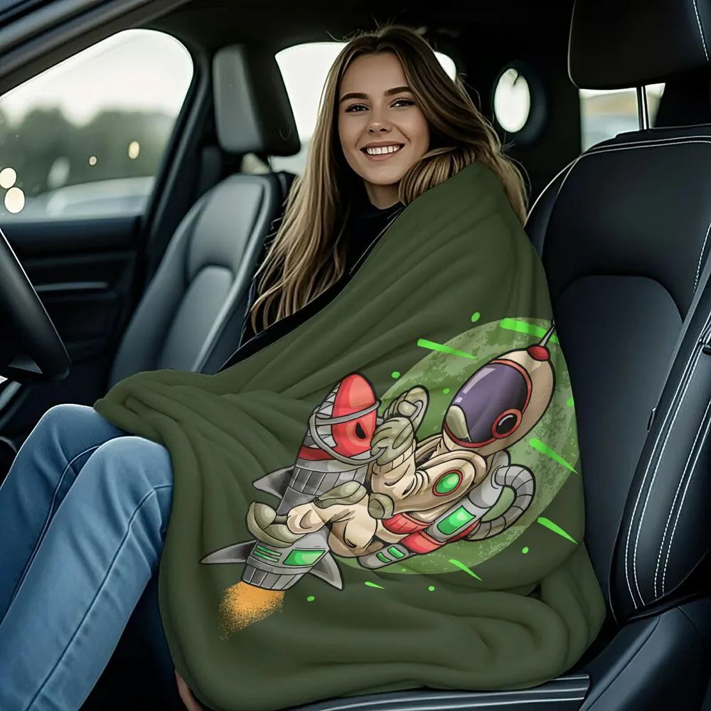 Introducing our Astronaut Riding Rocket Pattern Multipurpose Throw Blanket! Featuring a dynamic design of an astronaut riding a rocket, this blanket is perfect for adding a sense of adventure and cosmic fun. It can be used as a nap blanket, sofa blanket, travel blanket, picnic blanket, camping blanket, beach blanket, or car blanket. Made from soft fabric, it offers comfort while bringing an exciting, space - themed vibe to any occasion.