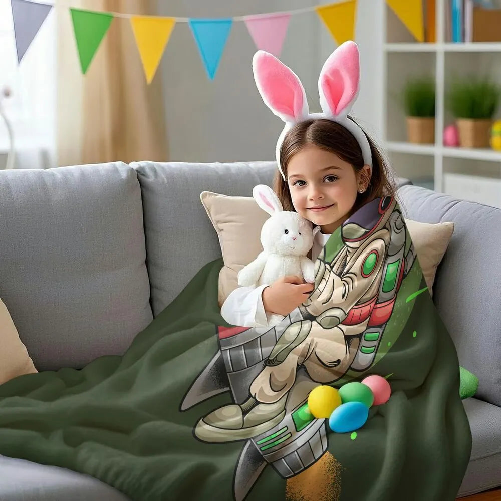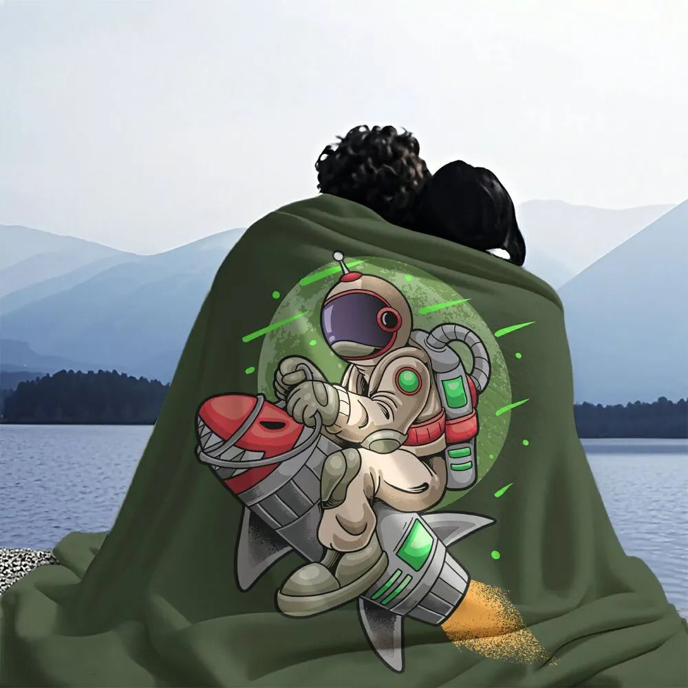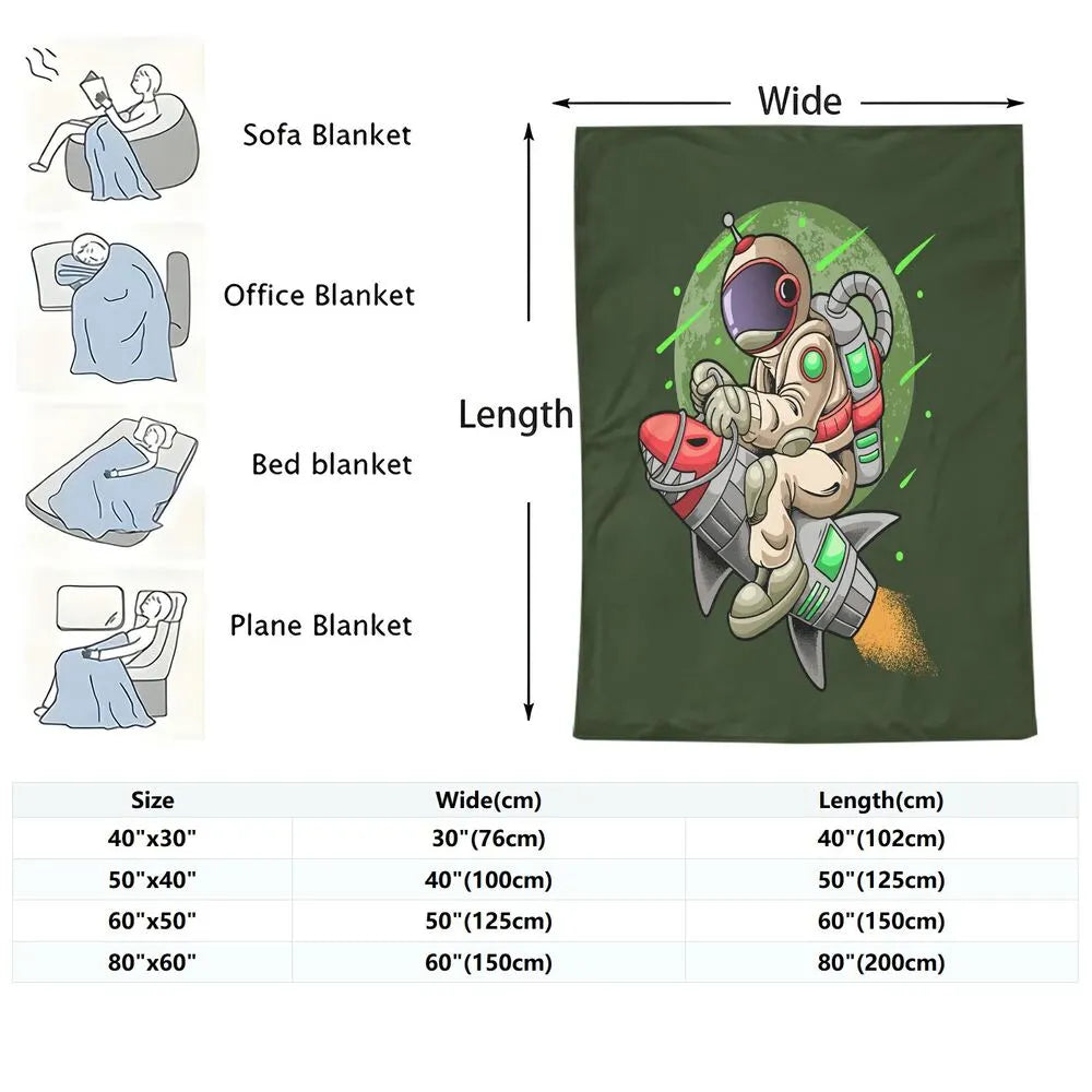 Astronaut Riding Rocket Pattern Multipurpose Throw Blanket
