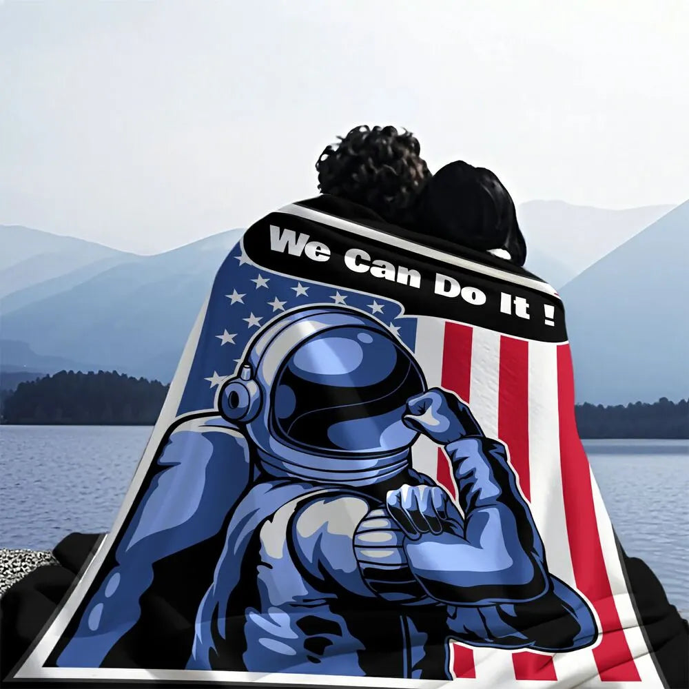 Astronaut We Can Do It! American Flag Pattern Multipurpose Throw Blanket