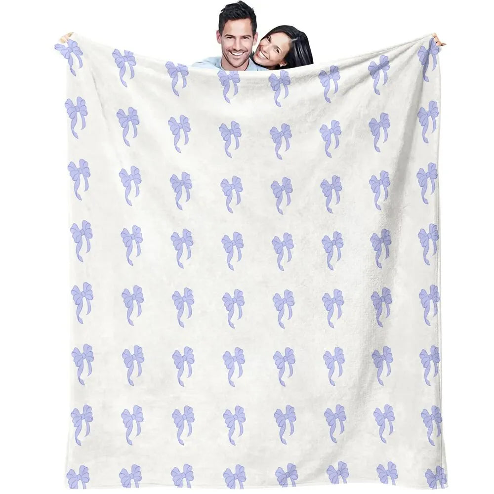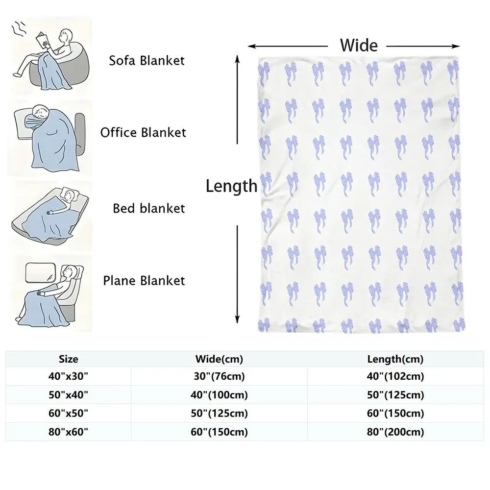 Introducing our Purple Bow Pattern Multipurpose Throw Blanket! Adorned with elegant purple bow designs, this blanket is as stylish and versatile as can be. Whether you're napping, relaxing on the sofa, having a picnic, going camping, enjoying a beach day, traveling, or needing warmth in the car, this blanket is your perfect companion. Made from soft fabric, it brings comfort and a touch of refined, charming style to every moment.