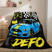 Introducing our Racing Car "DEFO" Multipurpose Throw Blanket! Featuring a vibrant blue racing car, checkered flags, and speedometer details with the bold "DEFO" text, this blanket is as thrilling as it is versatile. Whether you're napping, lounging on the sofa, having a picnic, camping, at the beach, traveling, or staying cozy in the car, this blanket has you covered. Made with soft fabric, it offers comfort and a touch of racing excitement for all your moments.