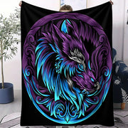 Artistic Purple and Blue Wolf Pattern Multipurpose Throw Blanket