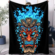 Artistic Tribal Mask with Blue Flames Pattern Multipurpose Throw Blanket