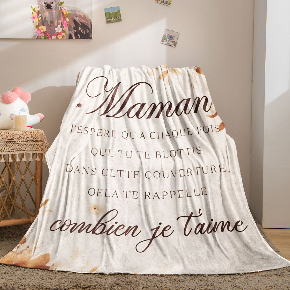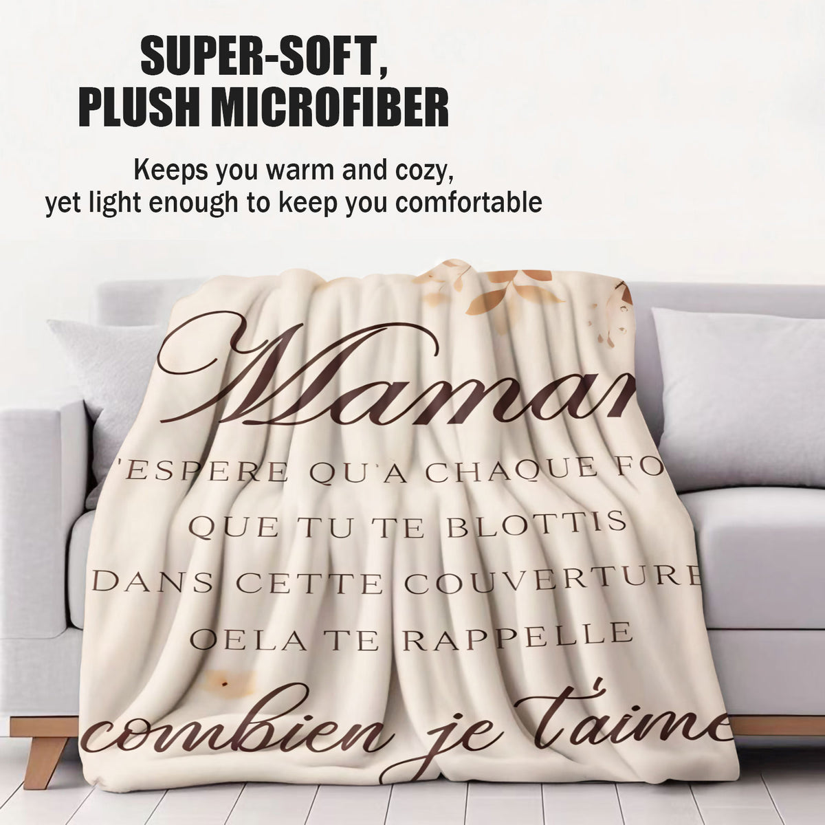 Wrap your mom in love with this exquisite French - themed throw blanket. Adorned with the heartfelt message, it’s a perfect blend of sentiment and style. The soft, neutral - toned fabric features delicate floral accents, adding a touch of elegance. Ideal for gifting on Mother’s Day, birthdays, or just to show your appreciation, this blanket offers cozy comfort while carrying a profound emotional connection. Let your mom feel your love every time she uses it.