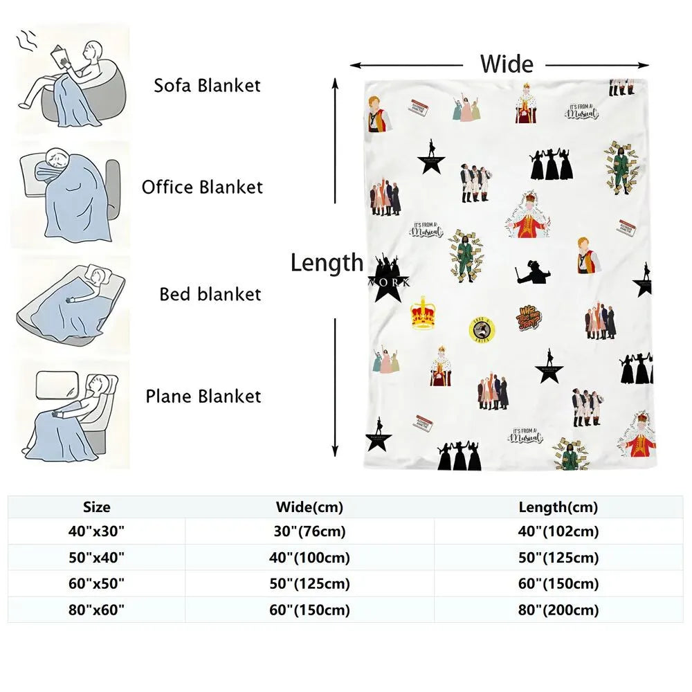 Introducing our Musical Themed Multipurpose Throw Blanket! Featuring a variety of iconic musical - related designs, this blanket is a must - have for musical lovers. It's perfect as a nap blanket, sofa blanket, travel blanket, picnic blanket, camping blanket, beach blanket, or car blanket. Made from soft fabric, it brings comfort and a touch of musical charm to any moment.