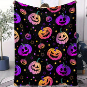 Colorful Halloween Pumpkin Star Flannel Throw Blanket