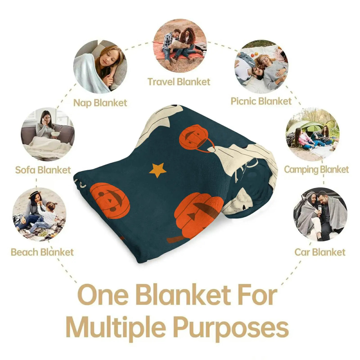 Cute Halloween Ghost Pumpkin Flannel Throw Blanket - 40"x30"