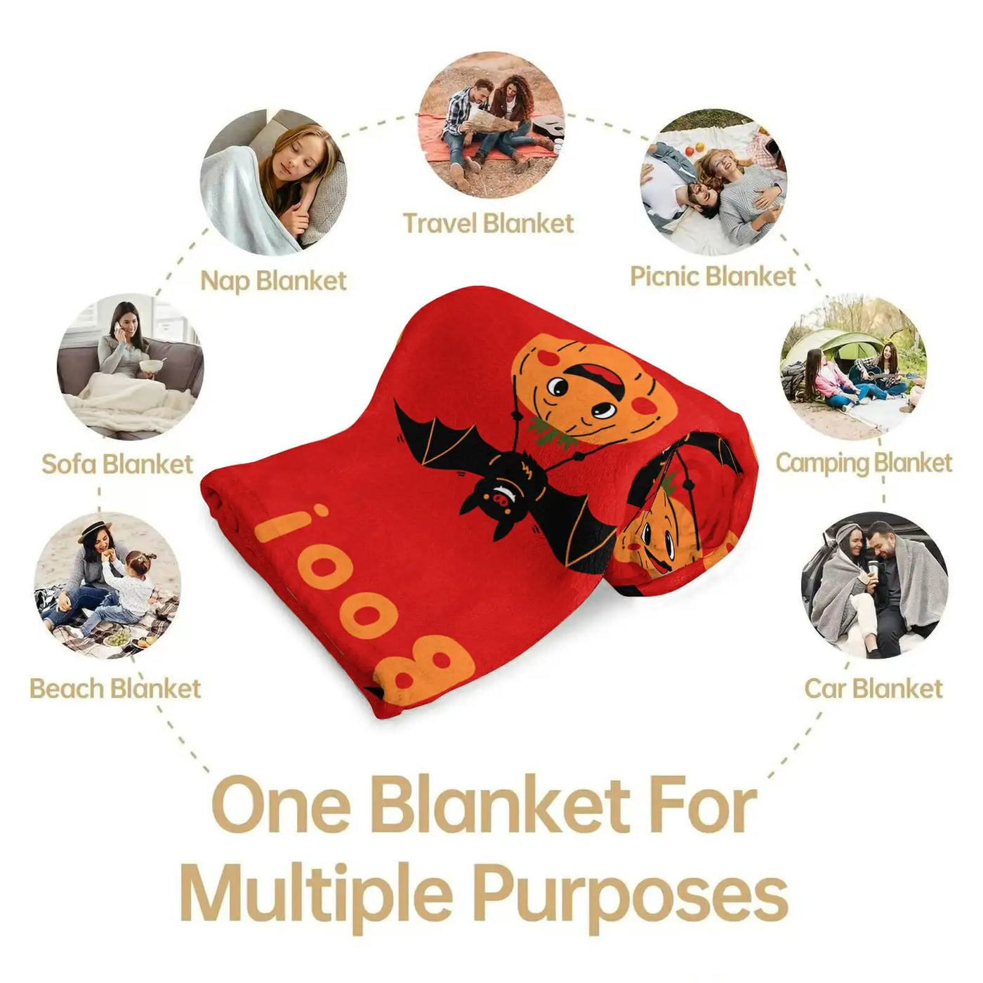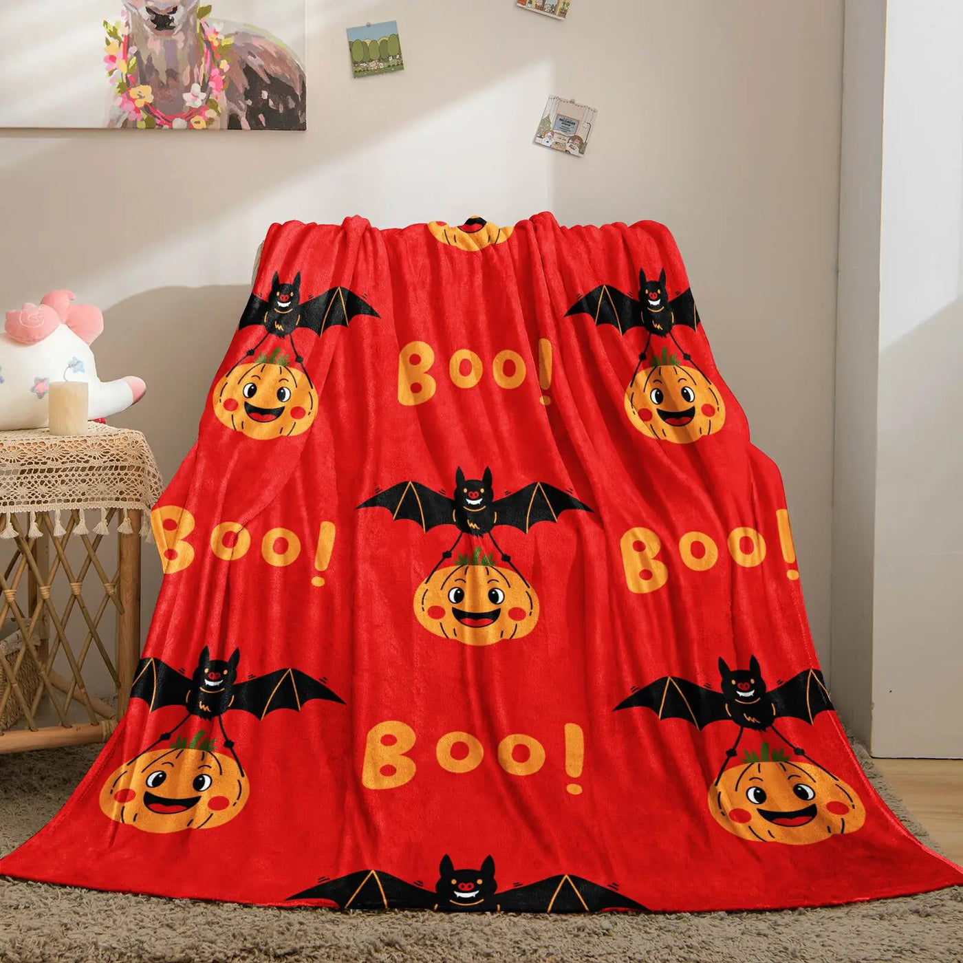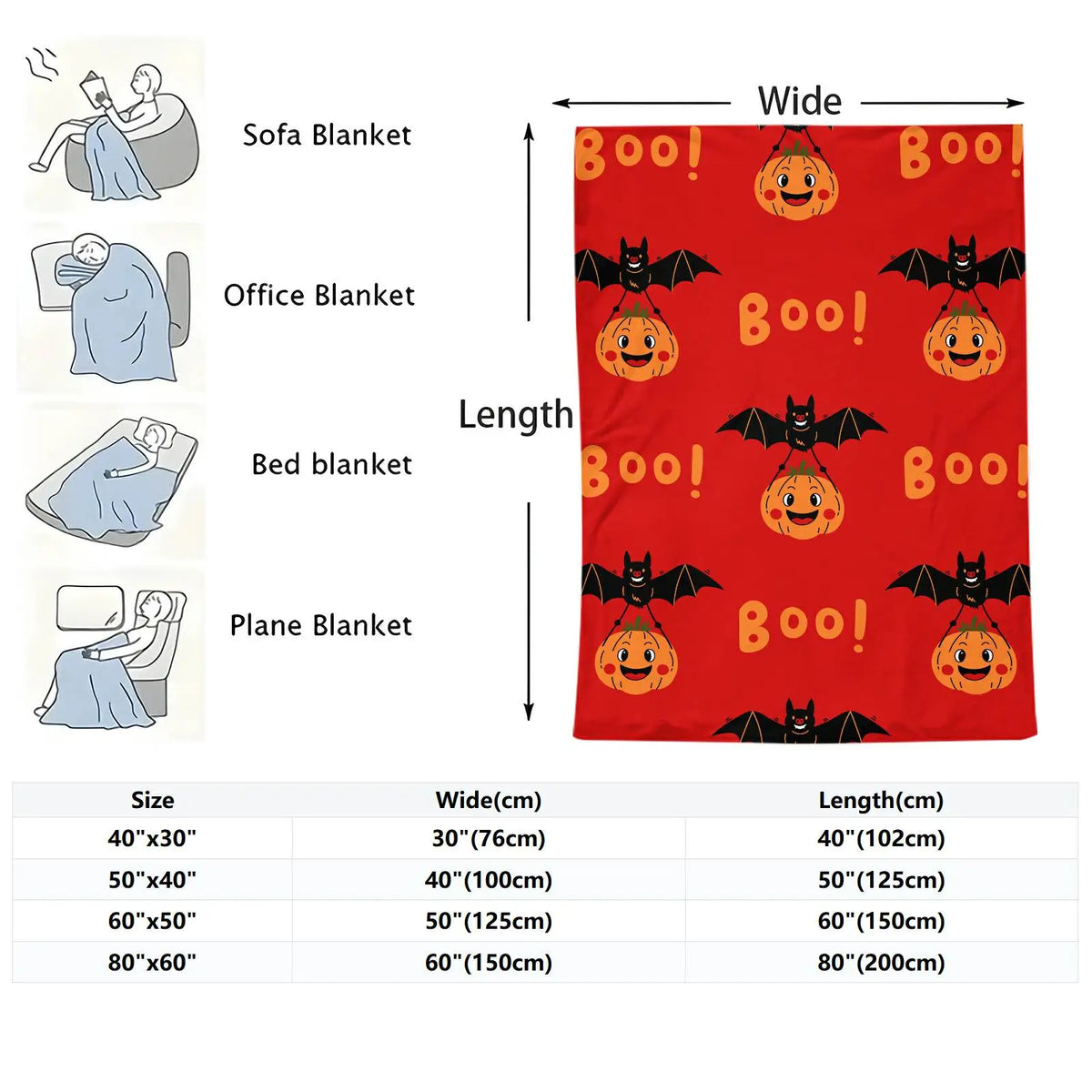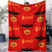 Halloween Bat & Pumpkin “Boo!” Flannel Throw Blanket