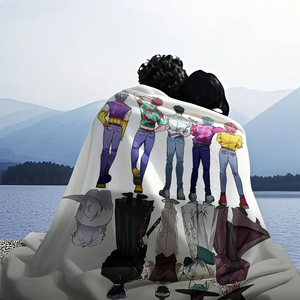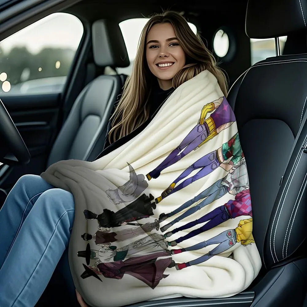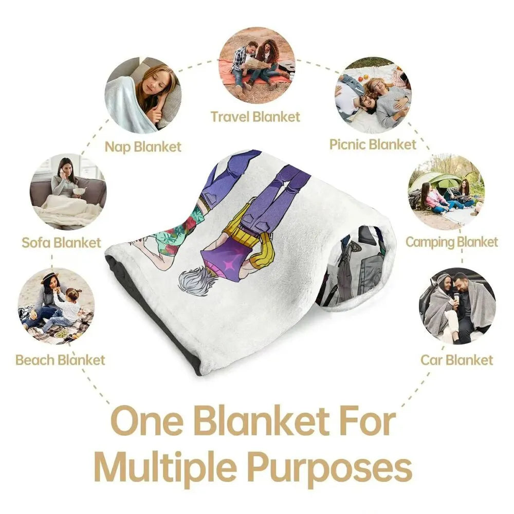 Introducing our K-POP Demon Hunters Anime Characters Reversible Multipurpose Throw Blanket! Showcasing unique anime character designs from K-POP Demon Hunters in a reversible style, this blanket is perfect for fans. Whether you're napping, relaxing on the sofa, having a picnic, going camping, enjoying a beach day, traveling, or needing warmth in the car, this blanket is your ideal companion. Made from soft fabric, it brings comfort and a touch of anime - themed charm to every moment.